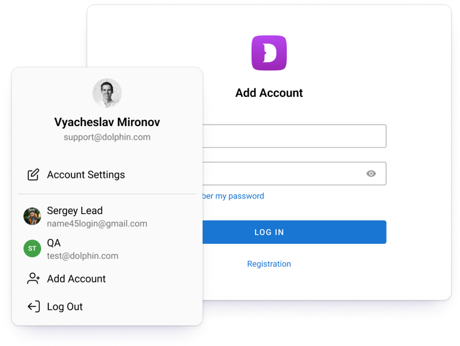 Log in and easily switch between multiple accounts